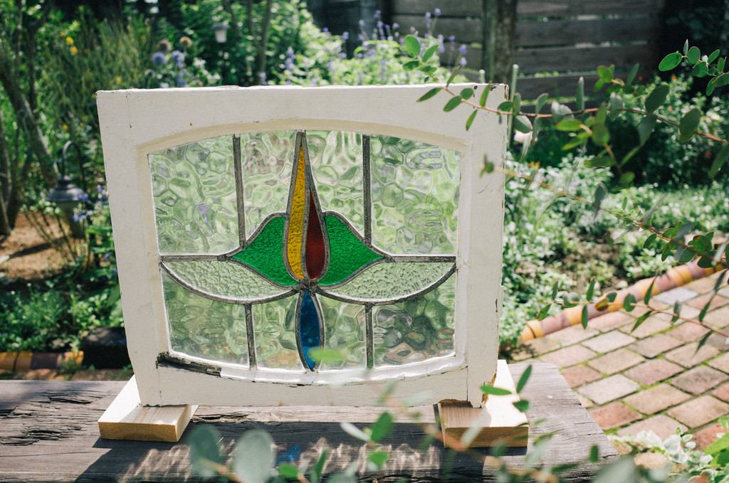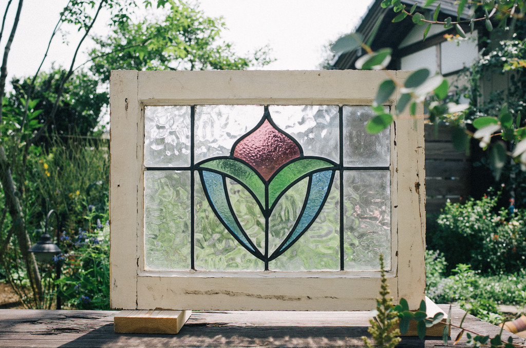 上から順に見ていくと、左のほうの小さい四角がアンティークステンドグラス。その右の大きく開いている部分はフレンチドアと鎧戸を取り付けます。そしてその右、実はこの奥に秘密(?)の入り口。
