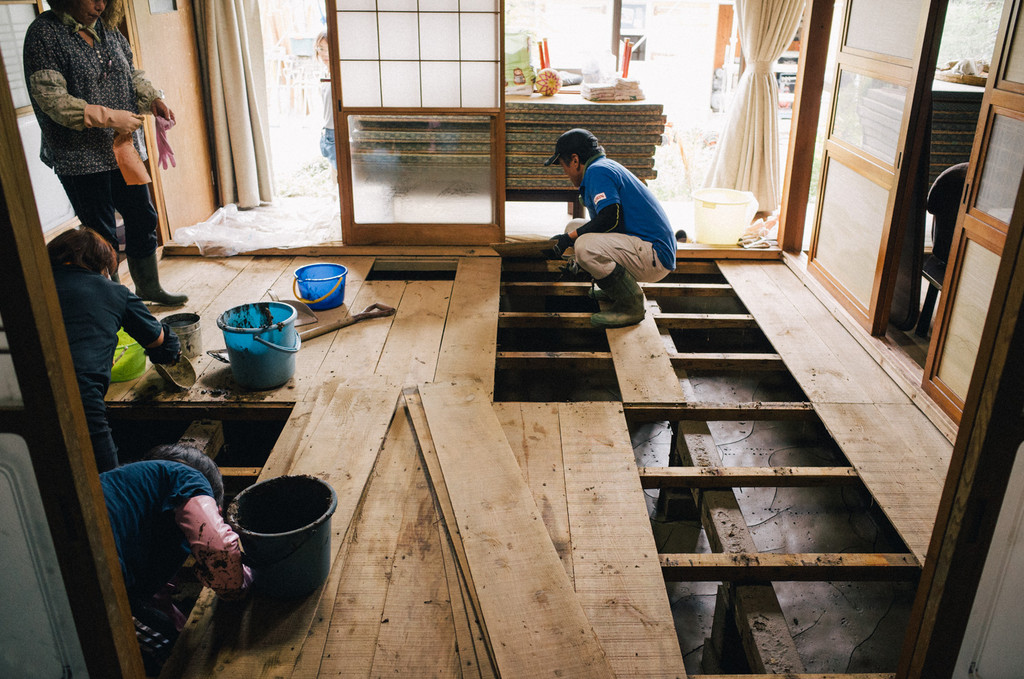 両親が住んでいる母屋の方は床板をはがして床下の泥を掻き出しました。この後消石灰を撒いて消毒。
